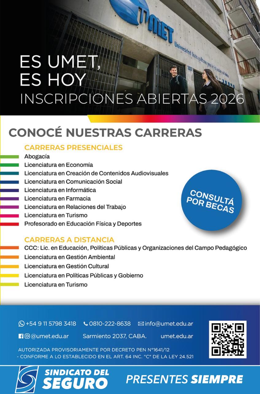 El Sindicato del Seguro de la República Argentina celebra el convenio de colaboración con la Universidad Metropolitana para la Educación y el Trabajo (UMET) mediante el cual nuestros afiliados al Sindicato del Seguro y/o familiares directos podrán acceder al financiamiento de un PROGRAMA DE BECAS que les otorgue la posibilidad de estudiar una carrera de grado (a elección) dentro de la oferta académica que dispone la institución.
