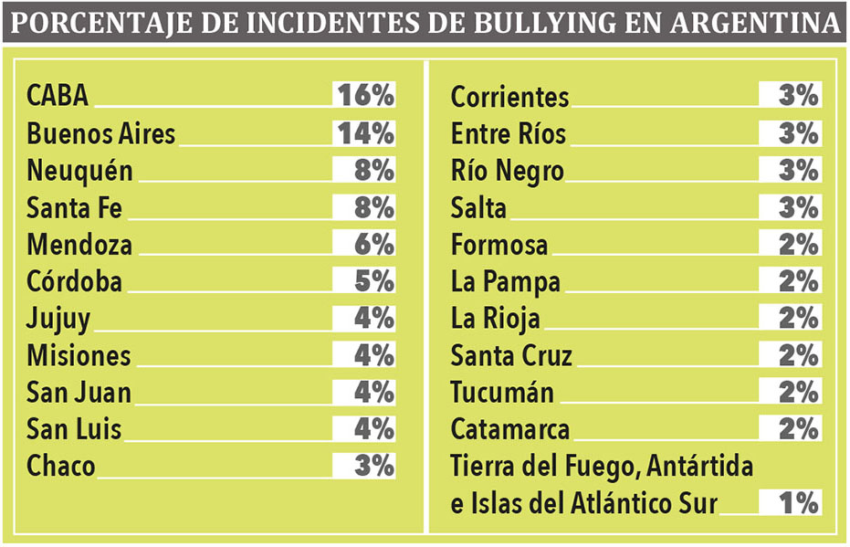 Las estadísticas demuestran que Argentina es un país con altísimos niveles de bullying, donde todos los días 7 de cada 10 estudiantes sufren algún de tipo de maltrato y hostigamiento.